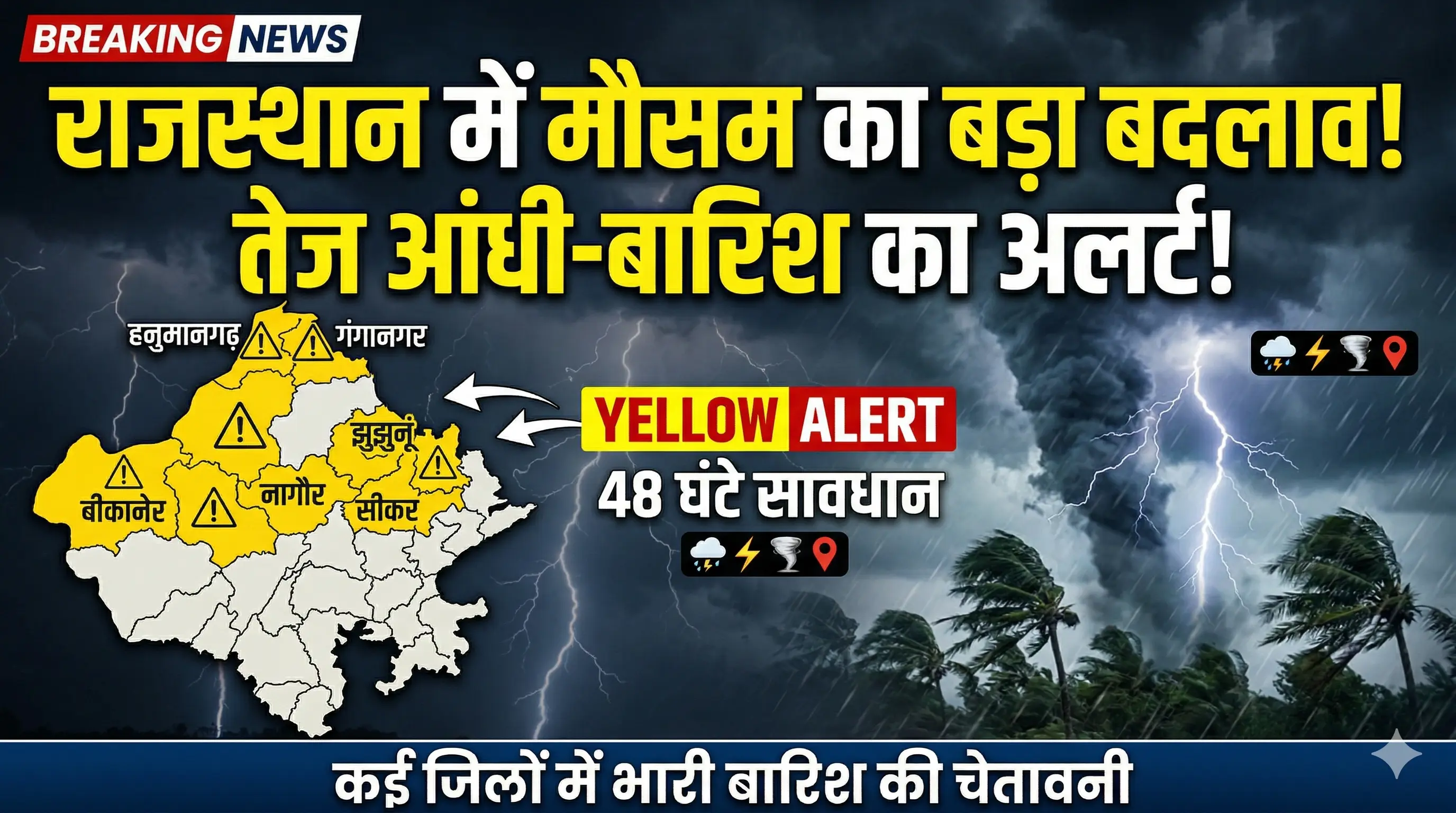 राजस्थान में मौसम का मिजाज एक बार फिर करवट लेने को तैयार है। मौसम विभाग (IMD) ने प्रदेश के कई हिस्सों में पश्चिमी विक्षोभ (Western Disturbance) के सक्रिय होने की चेतावनी जारी की है, जिससे राज्य में आगामी कुछ दिनों तक तूफानी बारिश और ओलावृष्टि की संभावना बनी हुई है। फरवरी और मार्च के महीनों में राजस्थान का मौसम अक्सर अनिश्चित रहता है, लेकिन इस बार का बदलाव किसानों के लिए चिंता का बड़ा कारण बन गया है।